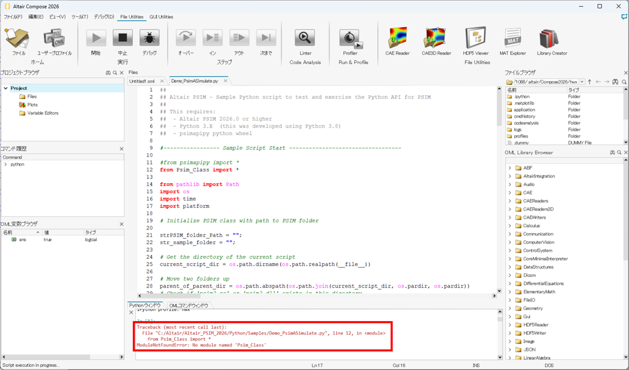 Compose2025.1はPSIMのPython実行がうまくいかない場合がありますので、
