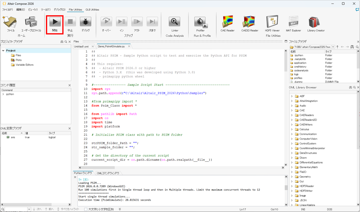 4.ComposeからPSIMで用意されているPythonのファイルを実行