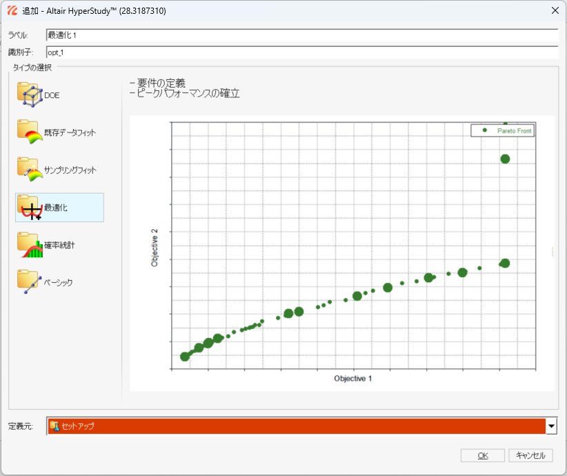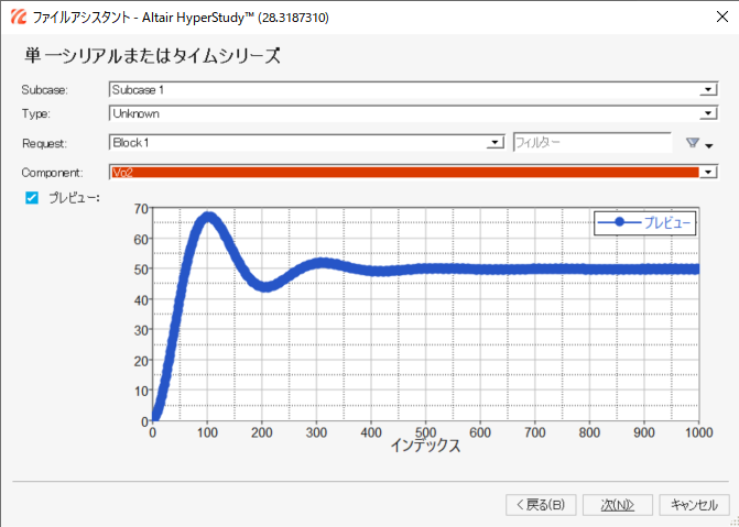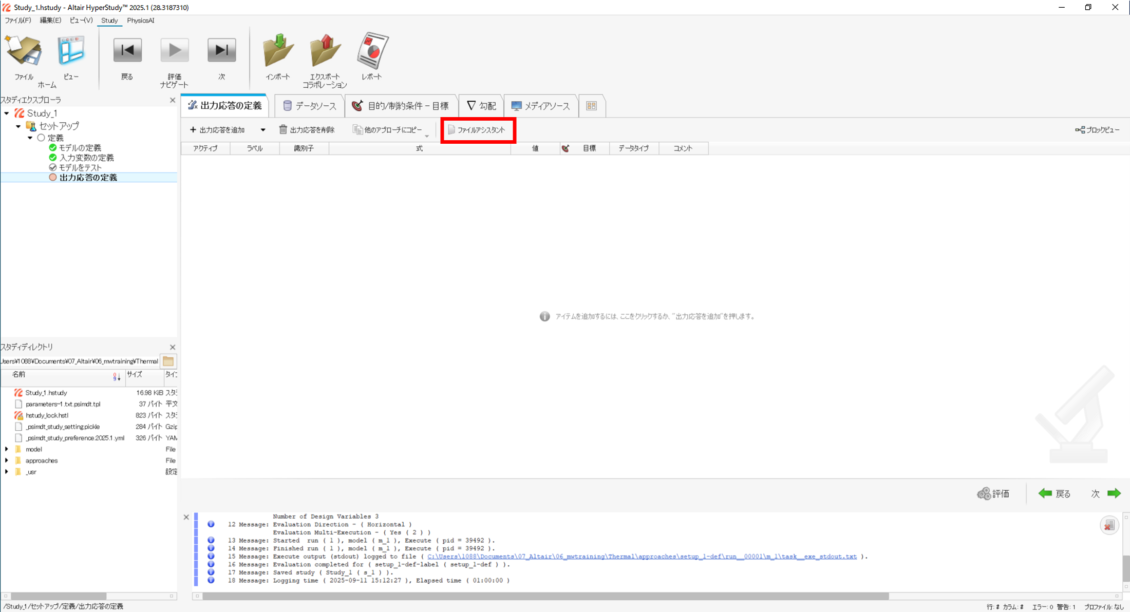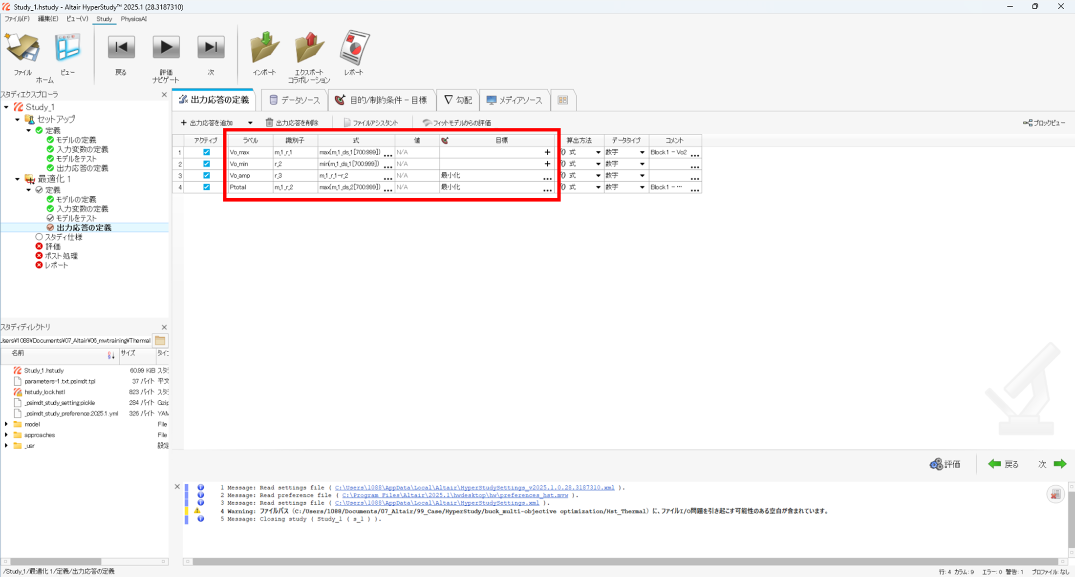 式で「最大」を選択し、「終了」をクリックすると、HyperStudyの出力応答が入力されます。