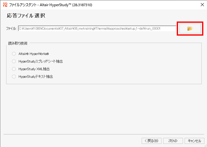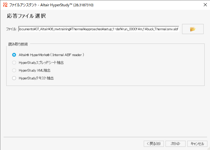 ファイルを選択すると「読み取り技術」が有効になり、Altair HyperWorksが有効になります。