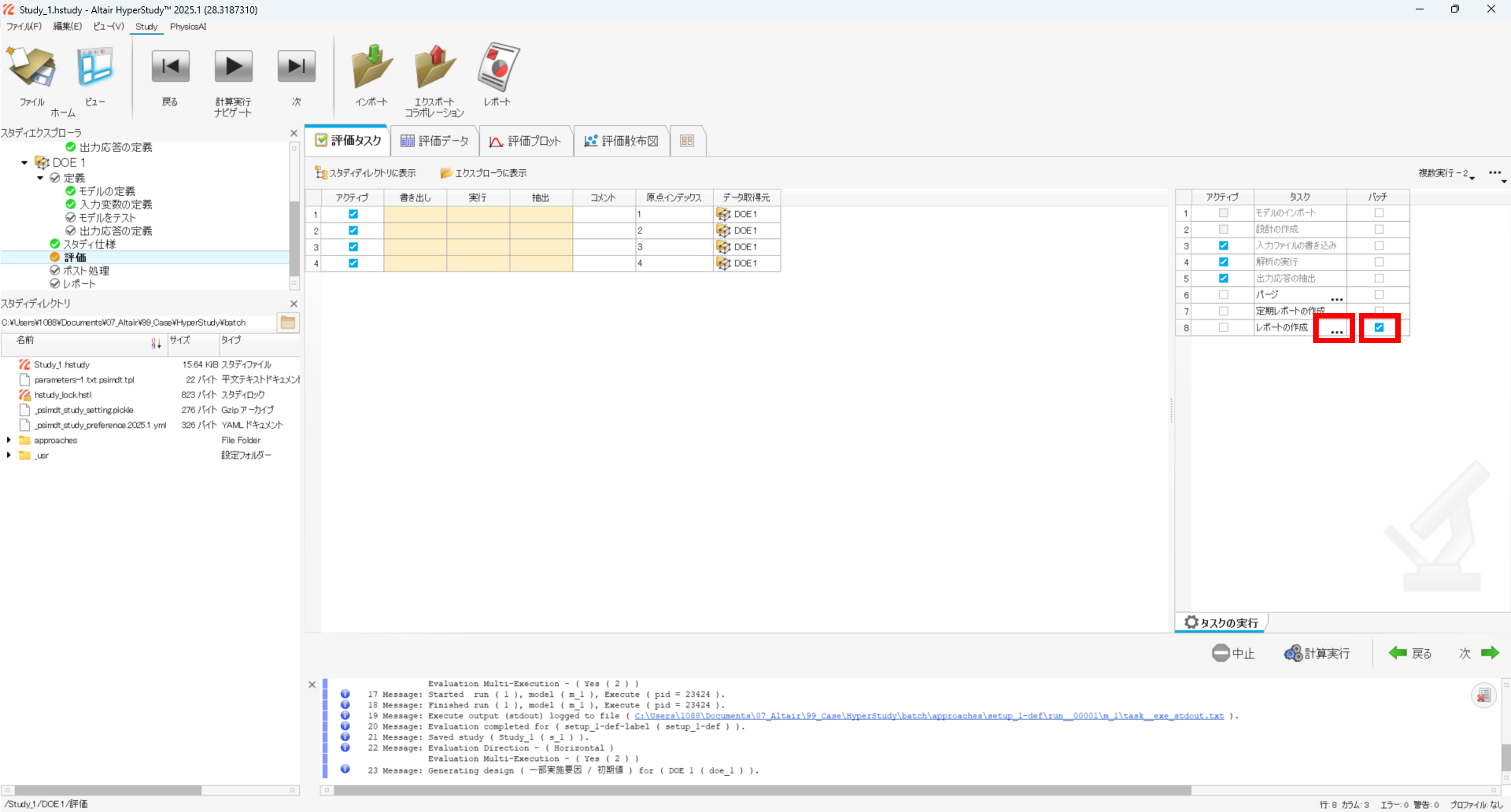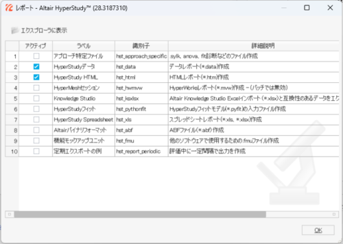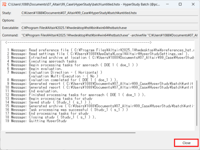 HyperStudyを実行し、レポートを作成してHyperStudyを自動的に閉じる方法を紹介します。