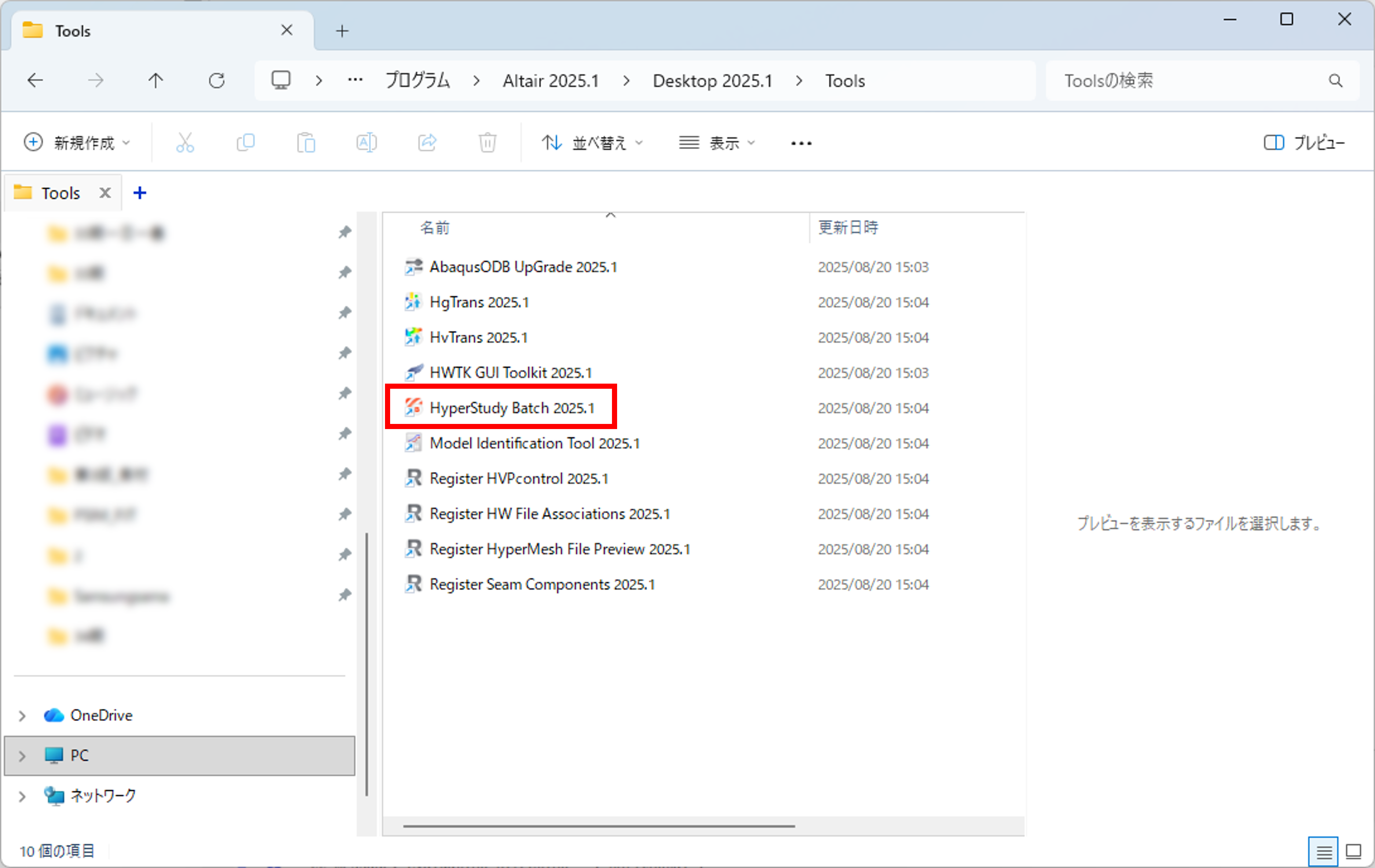 スタートメニュー→すべて→Altair 2025.1→Tools