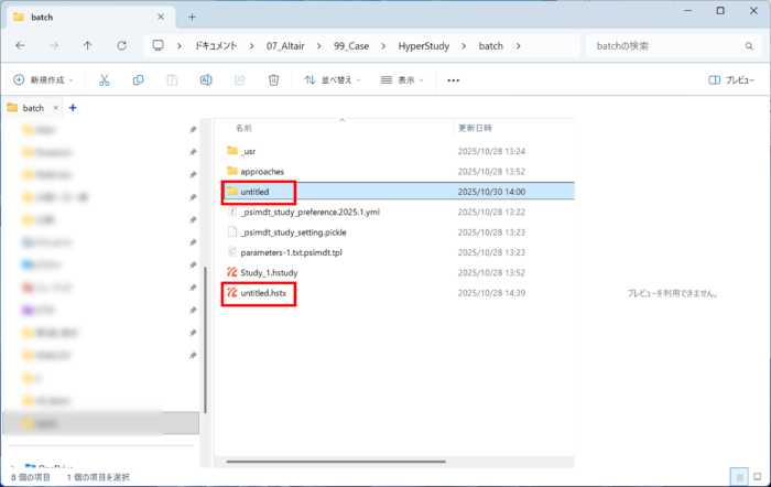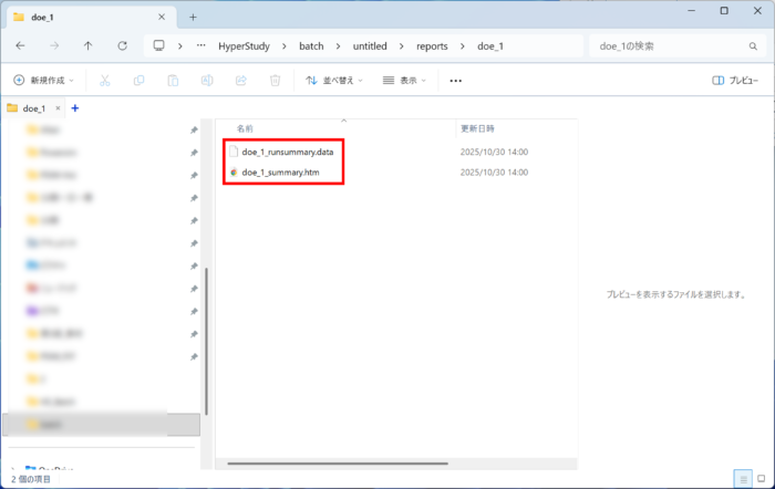 実行が終わると*.hstxファイルと同じ名前のフォルダができ、実行ファイル一式とレポートが保存されています。