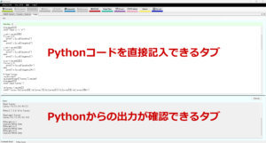 Pythonスクリプト Pythonライブラリ経由で簡単に扱えるようにした機能 主なポイント ・Pythonコードを直接記入できる ・Pythonからの出力を確認できる ・他ツール連携により活用の幅が広がる ・波形データを出力することも可能(例:Matplotlib)