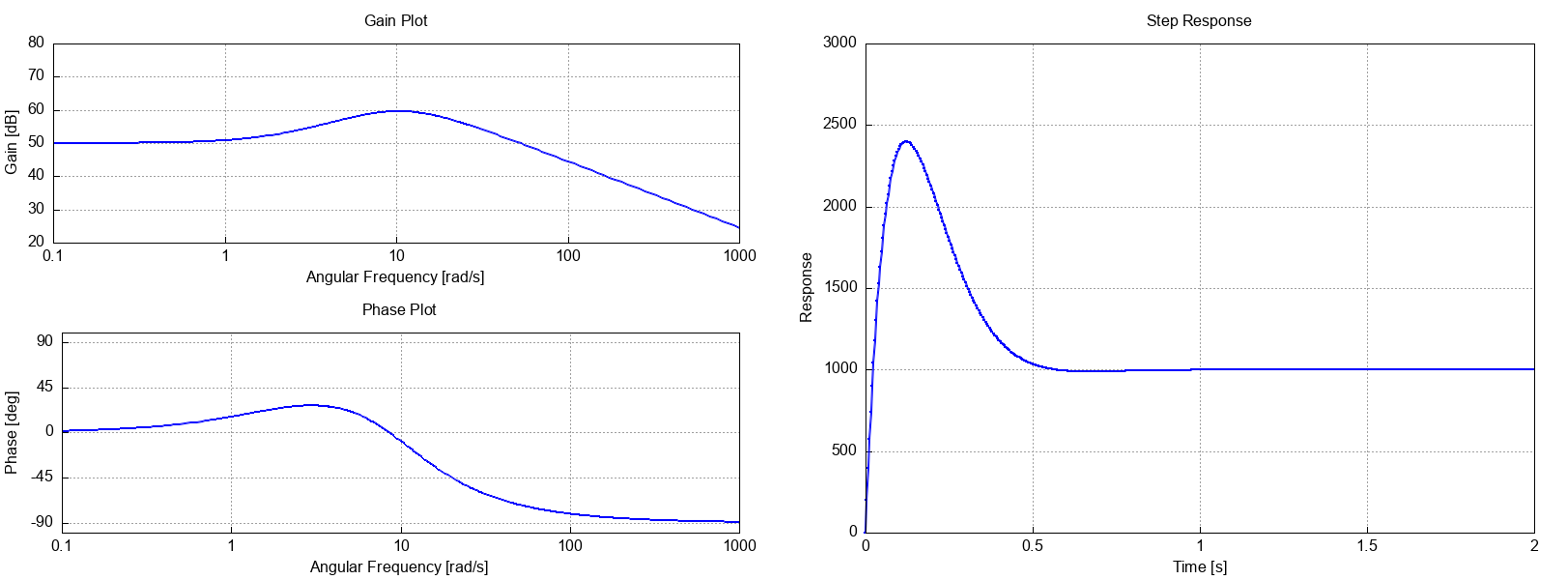 系統周波数に対する有効電力の特性:ボード線図 系統周波数に対する有効電力の特性:ステップ応答